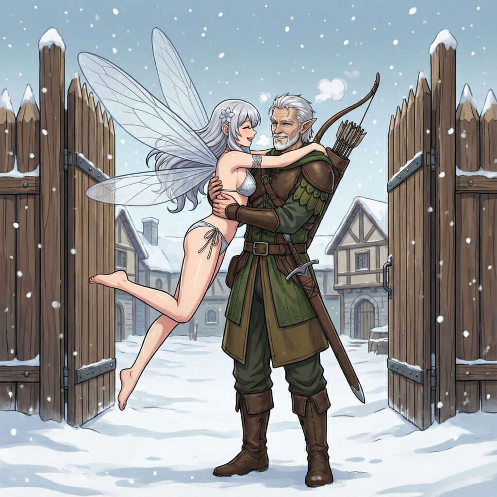 „Kaelan!“ jubelte sie und stürzte hinaus zum Tor, als wäre sie wieder zwanzig. (Sie ist wie Zwanzig. Elfen und ihr Langlebigkeitsgen!)