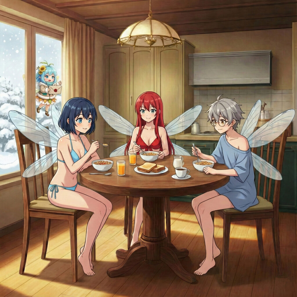 Der Morgen im WG-Häuschen begann ruhig, bis es Poch-Poch-Poch am Fenster machte. Draußen hämmerte eine kleine Postelfe mit erstaunlicher Vehemenz gegen die Scheibe. Sie hielt einen versiegelten Brief in den Händen