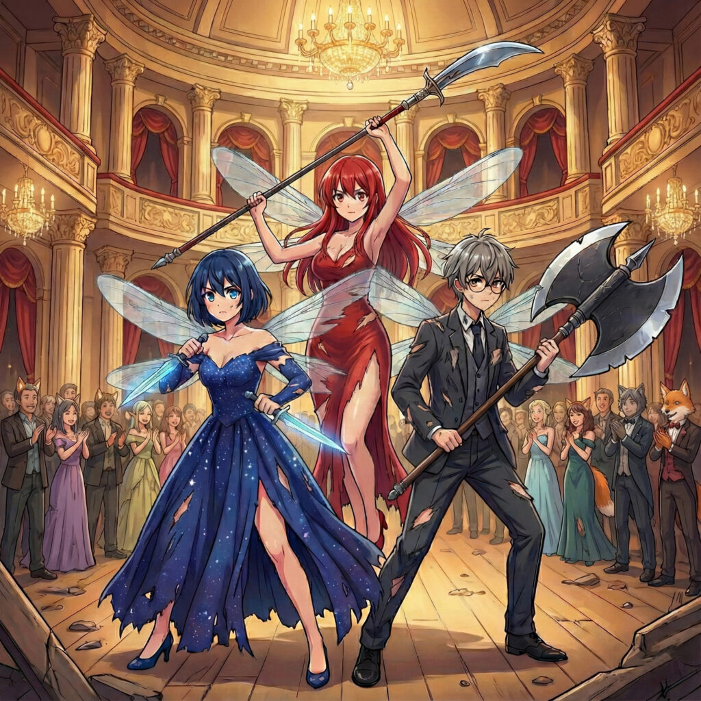 Lily folgte ihm. Trotz des engen Kleides wirbelte sie elegant wie eine Tänzerin durch die Reihen der Dämonen. Ihre Naginata blitzte im Licht der Kronleuchter. Zack. Zack. Angreifer zwei und drei fielen.