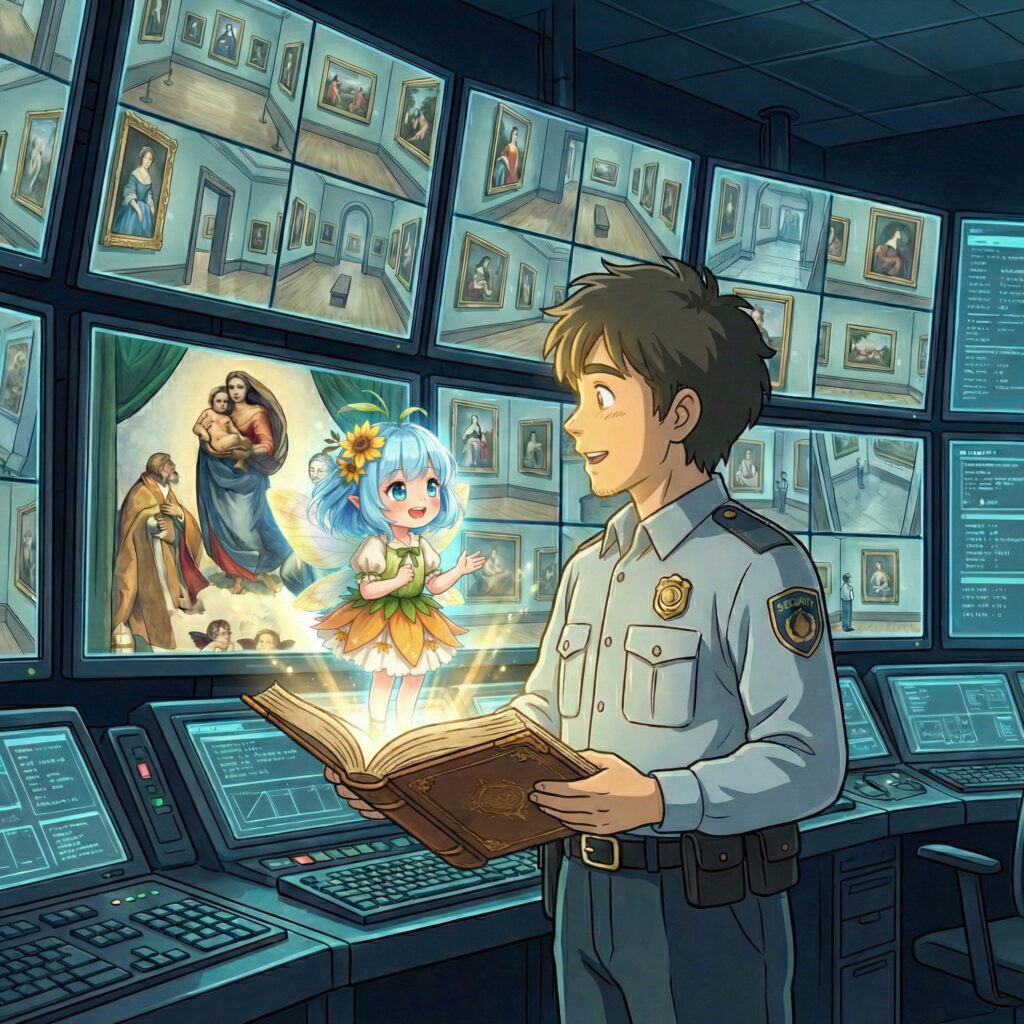 Es war einer dieser nächtlichen Morgenstunden in der Überwachungszentrale von Secura Nord, an denen die Zeit nicht floss, sondern zäh wie alter Kleister klebte. Frank lehnte sich in seinem ergonomischen Bürostuhl zurück, der leise unter seinem Gewicht ächzte. Vor ihm flimmerten zwei Dutzend Monitore, die jeden Winkel der Dresdner Gemäldegalerie der Alten Meister zeigten.
