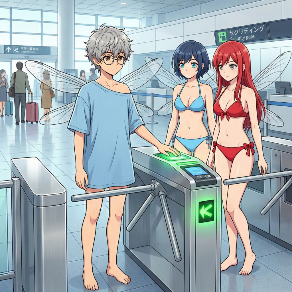 Ein Security-Mitarbeiter bemerkte die Drei und stutzte kurz. Durch den Schleier der Kompensationsmagie sah er jedoch keine Elfen mit minimalistischem Modegeschmack, sondern drei extrem lässige, fast schon aristokratisch wirkende junge Leute, die so aussahen, als gehörten sie in die First Class eines Privatjets.