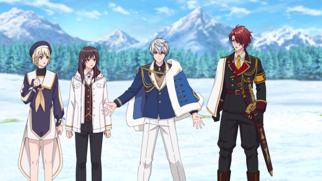 Die Farbpaletten sind intelligent codiert: Das Zentrale Land wird durch königliches Gold und Blau dominiert, der Norden durch eisiges Weiß und Violett, der Osten durch tiefes Blau und Grün, der Westen durch leuchtendes Rot und Purpur, und der Süden durch warme Erd- und Pastelltöne. Diese visuelle Codierung hilft dem Zuschauer immens, die große Anzahl an Charakteren sofort zuzuordnen. Besonders hervorzuheben sind die Close-ups. In emotionalen Momenten investiert das Studio viel Arbeit in die Augen und Gesichtsausdrücke der Charaktere. Die Wimpern sind fein gezeichnet, das Licht bricht sich in den Iriden – hier sieht man das Erbe der Otome-Ästhetik, die darauf ausgelegt ist, den Betrachter zu verzaubern.