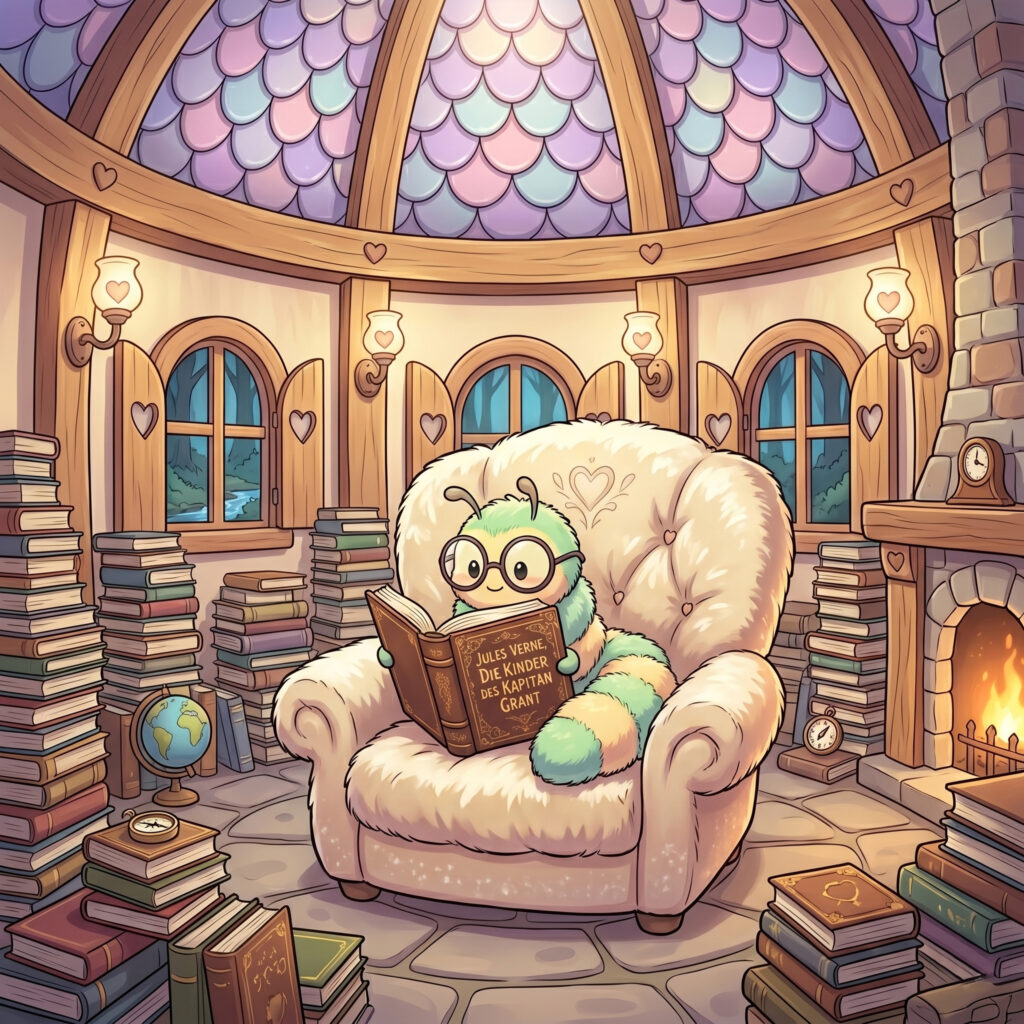 Sie trat an den Sessel heran und legte das Buch sanft in die zittrigen Händchen des Wurms. Was dann passierte, ließ selbst die ungeduldige Lily staunen. In einer rasenden, fast schon absurden Geschwindigkeit schlug der Wurm das Buch auf. Seine Augen huschten über die Seiten, so schnell, dass sie nur ein unscharfer Fleck waren. Er blätterte nicht, er schien den Text förmlich in sich hineinzusaugen. Und je weiter er las, desto stärker nahmen seine Konturen wieder Gestalt an. Die durchsichtige Blässe verschwand und eine gesunde Farbe kehrte in seinen Körper zurück.